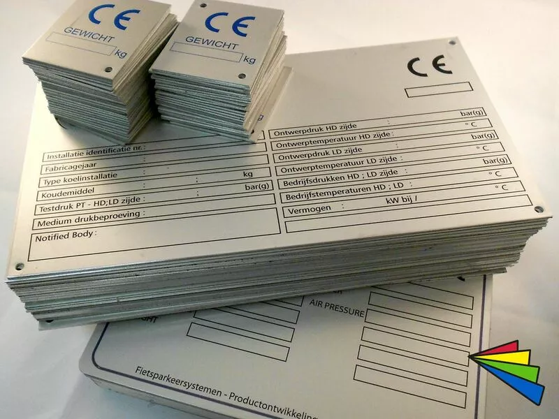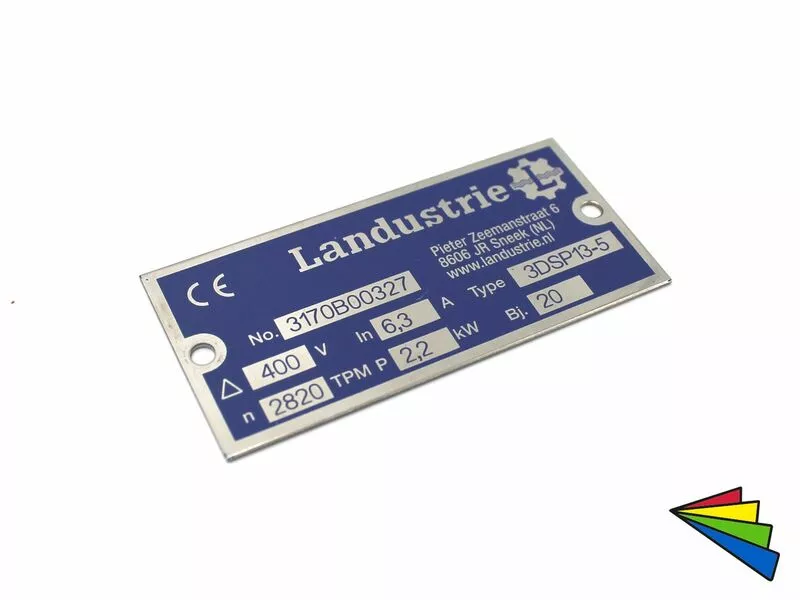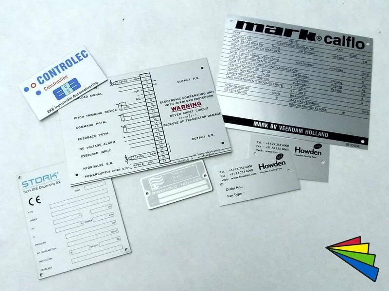 Tot slot zijn er de machineplaten en typeplaten met standaard invullingen zonder certificeringen. Of alleen maar een logoplaatje op de machine, boot of trailer. Ook hier zijn de mogelijkheden eindeloos.