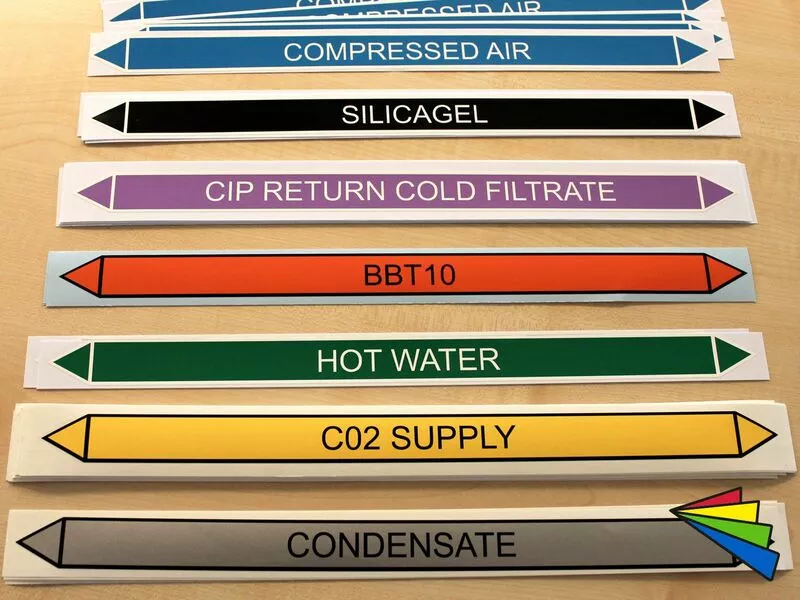 Labels die op leidingen worden gebruikt moeten doorgaans de kleurcodes volgen die zijn vastgesteld door diverse normen. In Nederland is dit: ISO 20560, de Noorse norm is NS813, Duitsland heeft DIN 2403, Amerika ASME A13.1, de Zweedse norm is SS741, Engeland heeft BS1710/4800 en de maritieme norm betreft ISO 14726. Bij geen geëiste norm is het mogelijk om RAL of Pantone kleuren op te geven.